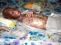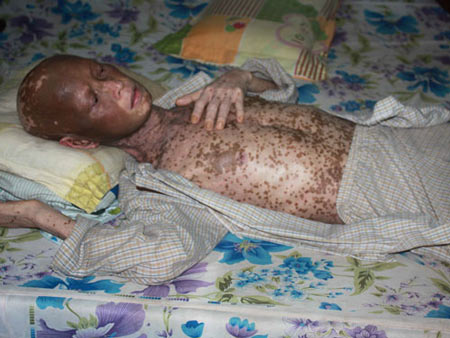 Theo các thông tin được ghi nhận từ các cơ quan báo chí, người bệnh bỗng nhiên có triệu chứng sưng chân, đau nhức xuất hiện từ tháng 7/2011. Bệnh nhân được chữa trị từ phòng khám bệnh tư nhân ở Bình Phước cho đến Bệnh viện Bệnh Nhiệt đới, Bệnh viện Chợ Rẫy tại Thành phố Hồ Chí Minh với chi phí người nhà phải bỏ ra hơn 300 triệu đồng nhưng không khỏi đành phải xuất viện về nhà nằm chờ... Người bệnh được điều trị tại một số bệnh viện ở trên, bệnh viện này chẩn đoán bị dị ứng thuốc, bệnh viện khác chẩn đoán bị nhiễm trùng máu, mủ màng phổi, hội chứng Steven Johnson... Tuy vậy, bệnh cảnh lâm sàng không được cải thiện, thậm chí còn nặng hơn lúc đầu, càng bôi thuốc, da trên khắp cơ thể càng bong tróc như rắn lột da, toàn thân loang lổ, đen sạm, hai tai nặng, khó nghe; mắt mờ, giọng nói của ú ớ không rõ, toàn thân khó cử động, sức khỏe giảm sút nghiêm trọng, trọng lượng cơ thể từ 64 kg giảm xuống còn 34 kg...