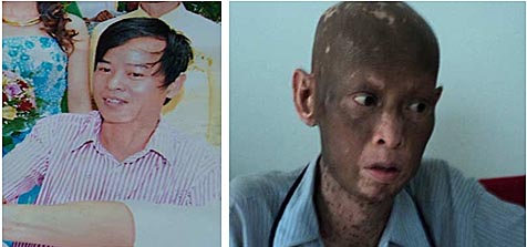 Bệnh nhân trước và sau thời gian bị mắc bệnh (ảnh do người nhà cung cấp và ảnh của Bùi Liêm) |