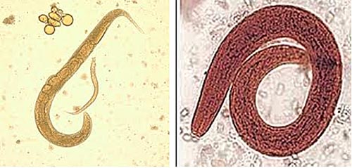 Giun lươn trưởng thành và ấu trùng giun lươn Strongyloides stercoralis (ảnh internet) |