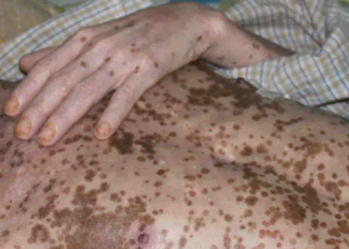 Da của bệnh nhân sau hơn một năm phát bệnh (ảnh Chế Bắc) |