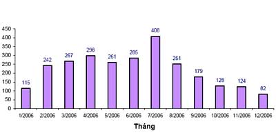 Biểu đồ: Diễn biến bệnh nhân sán lá gan lớn phát hiện tại Phòng khám chuyên khoa Viện Sốt rét KST-CT Quy nhơn năm 2006. |