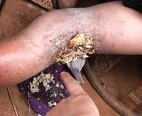 Bệnh giòi ký sinh ở ung nhọt của chân (ảnh internet) |