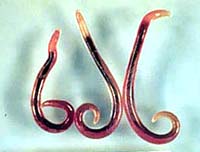 Giun đực dài 11-25 mm, giun cái dài 25-54 mm; trứng giun nhỏ và không cân đối, có một đầu phồng to lên. Giun chắc, mập, hai đầu cong lại phía bụng. Nửa thân trước có những gai hình lá, gai gần cổ có kích thước rộng hơn. Chân gai có 3 răng, những gai ở giữa thân hẹp hơn và chỉ có 1 răng; nửa thân sau không có gai phủ. Đầu có 4 hàng gai chạy theo chiều ngang, gai to, thô, miệng gồm 2 môi.