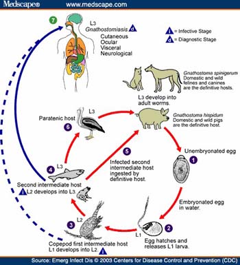 12.Moore DA, McCroddan J, Dekumyoy P, Chiodini PL. Gnathostomiasis: an emerging imported disease. Emerg Infect Dis. Jun 2003;9(6):647-50.