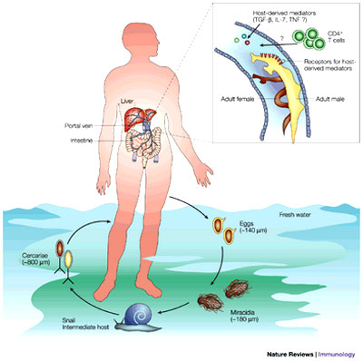 Những gì mà chúng ta biết về sinh miễn dịch bệnh sán máng là từ các kháng nguyên củ a trứng sán hoặc các chất chiết hòa tan của các con sán trưởn thành trong điều kiện thực nghiệm. Nó đã cho thấy rằng sản phẩm của giun sán tác động trực tiếp sinh hình thành khối tân sinh.