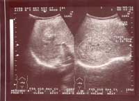 + Một số trường hợp còn quan sát được một khối nhỏ có độ hồi âm ít rõ.