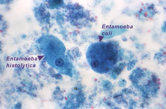 Nhiễm ký sinh trùng đơn bào E. histolytica thường không có triệu chứng, chỉ một phần nhỏ những người bị nhiễm sẽ phát triển thành bệnh lỵ và trong một số ít trường hợp, xuất hiện áp xe gan. Ở những khu vực lưu hành bệnh lỵamíp, tỷ lệ mắc mớiE. histolytica được phát hiện cao hơn loài E. dispar, trong khi quần thể dân cư không bị bệnh lỵ amíp. Chẩn đoán phân tử ở những người mang mầm bệnh không triệu chứng cho thấy một số lượng đáng kể các trường hợp nhiễm phối hợp với Entamoebaspp. hoặc có liên quan đến một loài đơn bào khác. Tuy nhiên, sự đồng vận (synergy) có thể có giữa các quần thể loài hỗn hợp thúc đẩy độc lực của E. histolytica vẫn chưa được nghiên cứu; chủ yếu là do không thể tiến hành các thí nghiệm thực địa với những ký sinh trùng này trên người. Tuy nhiên, giả thuyết này là hợp lý vì như đã đề cập ở trên, sự hiện diện các loài đơn bào khác nhau ở cùng một cá thể dẫn đến những thay đổi trong hệ vi sinh vật và có khả năng, sự tương tác giữa các loài amíp có thể thay đổi các thông số của chu kỳ sinh học; ví dụ, bằng cách gây ra sự tập hợp hiệu quả của thể hoạt động vì nhiều phân tử trên bề mặt amíp là giống nhau giữa các loài khác nhau.