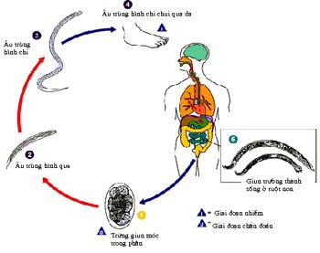 Hình ảnh ấu trùng giun móc/mỏ chui qua da |