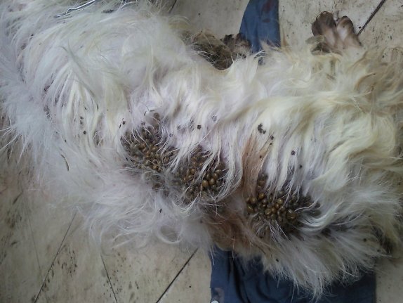 Hình ảnh những con ve lúc nhúc trên mình một con chó