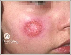 Hình ảnh tổn thương vùng da mặt do L.tropica |