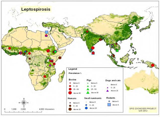 Bệnh Leptospirosis là một trong những bệnh lan truyền từ động vật sang người lan rộng ra khắp thế giới, ở cả vùng khí hậu ôn đới và vùng nhiệt đới. Tỷ lệ mắc bệnh hàng năm là khác nhau từ 0,02/100.000 dân ở các quốc gia vùng khí hậu ôn đới và 100/100.000 dân ở khí hậu nhiệt đới với triệu chứng hay gặp lách lớn, vàng da và viêm thận".