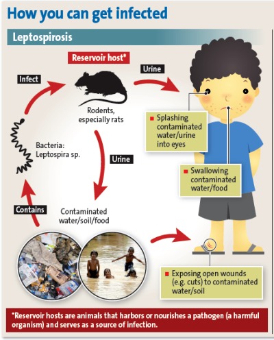 Leptospirosis được lan truyền thông qua nước tiểu động vật bị nhiễm bệnh và có thể lây nhiễm, miễn là nước tiểu vẫn còn ẩm.