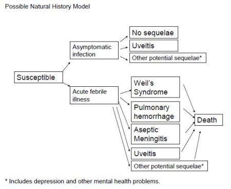-Nhiễm các vi sinh vật có thể được tìm thấy trong máu và trong dịch não tủy nếu bệnh nhân viêm màng não trong khoảng thời gian từ 7 đến 10 ngày đầu tiên qua phản ứng huyết thanh. Sau đó di chuyển đến thận. Sau 7 đến 10 ngày các vi sinh vật có thể được tìm thấy trong nước tiểu tươi. Do đó, những nỗ lực chẩn đoán sớm gồm cả xét nghiệm huyết thanh/ mẫu máu với một bảng đối chứng của các chủng khác nhau;
