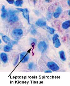 -Sử dụng một kỹ thuật nhuộm bạc để nhuộm mẫu mô thận nhằm phát hiện sự có mặt của vi khuẩn Leptospira;