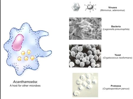 Các bào nang cũng đề kháng lại hệ thống miễn dịch của vật chủ, điều này giúp cho chúng tái xuất hiện nhiễm trùng liên tiếp trên người. Hầu hết các loài sống tự do, nhưng một số khác lại gây nhiễm trùng cơ hội và gây nên nhiễm trùng nghiêm trọng ở vùng kết giác mạc mắt của người và một số động vật khác, có thể gây loét nghiêm trọng và có thể mù.