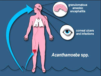 9.Khan, Net al., (2006), Acanthamoeba invasion of the central nervous system, International Journal for Parasitology 37 (2): 131-8.