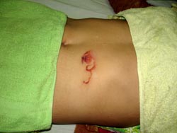 Hình ảnh sán lá gan lớn chui ra từ ổ bụng của bệnh nhân |