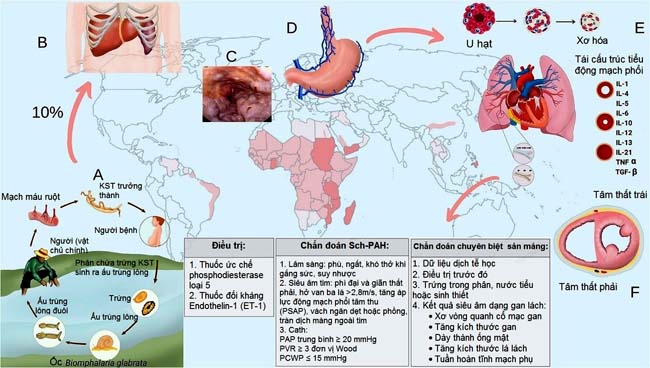 Hình 3c. Cơ chế tăng áp động mạch phổi do nhiễm sán máng Schistosoma spp. (SchPAH)