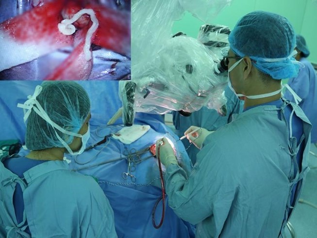 Các bác sĩ đang tiến hành ca phẫu thuật và hình ảnh ký sinh trùng sán nhái