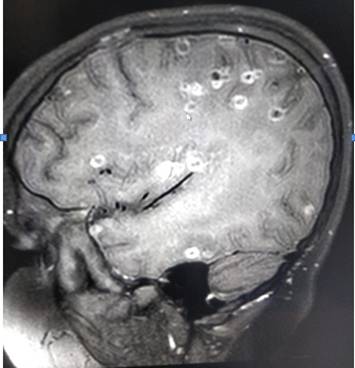 Chụp cắt lớp cho thấy những chấm tròn trong não của bé gái 8 tuổi chính là trứng của sán dây