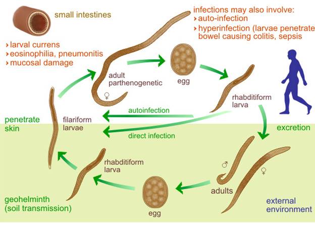 Cơ chế tái đi tái lại này khiến nhiều bệnh nhân ở thành phố vài chục năm không đi chân đất vẫn bị nhiễm giun lươn như thường (chu trình tự nhiễm). BS Cấp cho biết, giun lươn được biết đến lần đầu năm 1876 trên lính Pháp hồi hương từ Việt Nam. Ngoài người, chúng có thể gây bệnh cả ở chó mèo. Bệnh do giun lươn lưu hành khắp các vùng nhiệt đới và cận nhiệt đới, mỗi năm trên thế giới có khoảng 35 triệu ca mắc. Tại châu Á, giun lươn có khắp các nước Việt Nam, Lào, Campuchia, Thái Lan, Philippines, Malaysia, Ấn Độ, Trung Quốc, Nhật Bản. Tại Việt Nam, tỉ lệ người từng nhiễm giun lươn lên đến 29,1%, trong đó Tây nguyên có tỉ lệ cao nhất lên tới 42,4%. Song đến nay, các điều tra rải rác cho biết tỷ lệ này đã giảm đi đáng kể do ý thức của người dân đã thực hiện việc sổ giun cho các thành viên trong gia đình của họ và đi khám bệnh định kỳ khi có triệu chứng nghi ngờ của họ để xét nghiệm cận lâm sàng, kiểm tra.