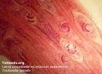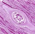 (ii)Sự xuyên thấu qua cơ và quá trình đóng kén trong mô cơ do ấu trùng.