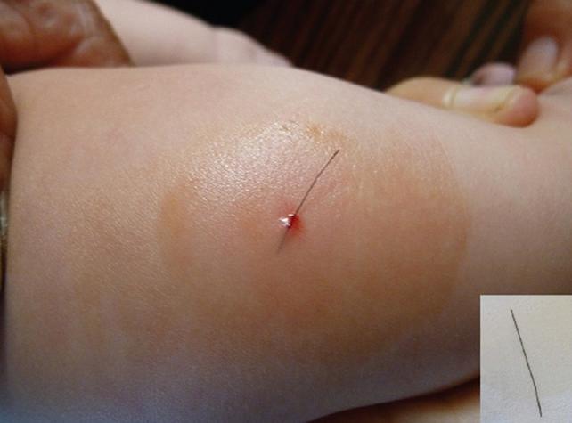 Kết luận: Một đoạn sợi tóc gây xuyên da.