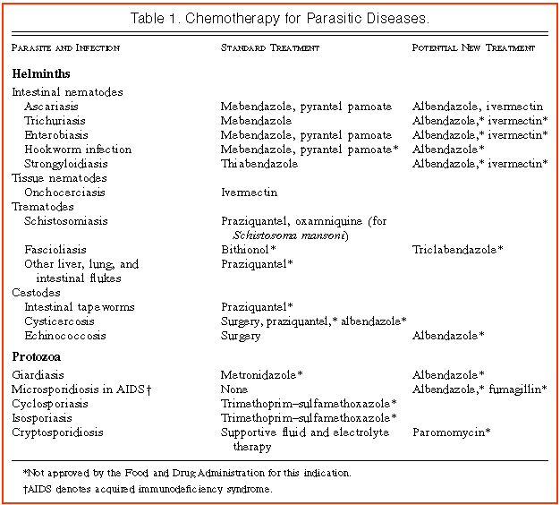 Nhiễm ký sinh trùng giun sán và đơn bào là những nguyên nhân quan trọng gây tỷ lệ bệnh tật và tỷ lệ tử vong trên toàn cầu. Hóa liệu pháp đóng một vai trò quan trọng không chỉ trong điều trị cho những cá nhân bệnh nhân riêng lẻ mà còn liên quan đến y tế công cộng và các biện pháp phòng chống trung gian truyền bệnh ký sinh trùng. Tuy nhiên, hiện tại chưa có một vaccine nào áp dụng để phòng bệnh ký sinh trùng ở người, nên kiến thức khoa học cần thiết phát triển chủ yếu lên các thuốc điều trị ký sinh trùng, cơ chế tác động của phần lớn các thuốc điều trị bệnh ký sinh trùng vẫn còn chưa thấu đáo. Các khuyến khích mang tính thương mại để thiết kế ra các thuốc chống lại ký sinh trùng chủ yếu ở các quốc gia đang phát triển còn hạn chế và một số thuốc chưa sẵn có ở tại một số quốc gia khác. Những năm gần đây, một số thuốc mới có hiệu quả chống lại một vài loại ký sinh trùng đã được ra mắt. Song việc sử dụng thuốc không đúng theo khuyến cáo và chỉ định sẽ dẫn đến một số hậu quả nghiêm trọng.