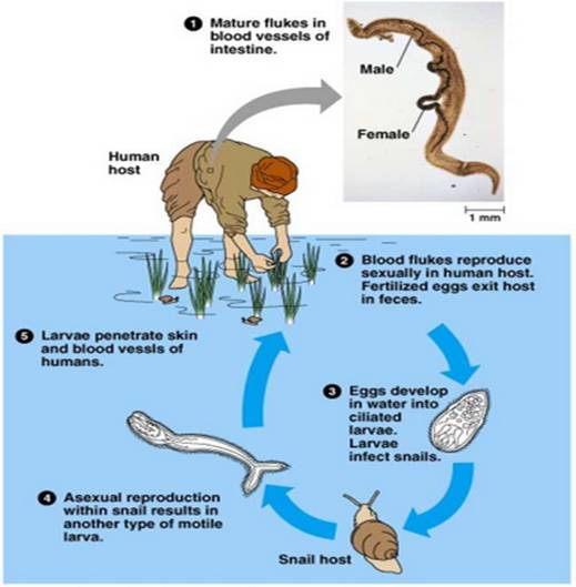 Hình 2.Chu kỳ sinh trưởng và phát triển của bệnh sán máng