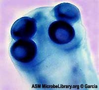 Sán dây trưởng thành ký sinh ở đoạn đầu ruột non. Trứng sán dây theo đốt gìa rụng ra khỏi cơ thể sán rồi ra ngoài. Trứng có hình tròn, đường kính 31 -38 mm, trứng sán dây không cần đòi hỏi thời gian phát triển ở ngoại cảnh. Khi trứng sán dây bò được bò, trâu ăn phải, vào trong cơ thể của bò, trâu, trứng phát triển thành ấu trùng nang sán (Cysticercus boris). Sau 4 tháng phát triển, nang sán có khả năng gây nhiễm.