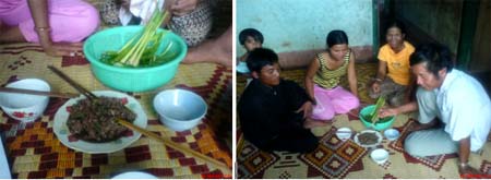 Món thịt bò sống được các thành viên gia đình ăn sống và uống rượu |