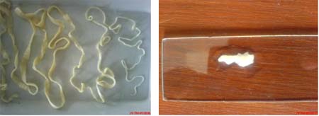 Hình ảnh một con sán dây bò dài 8m được đãi từ phân một bệnh nhân sau khi điều trị tại xã Đak Mon |