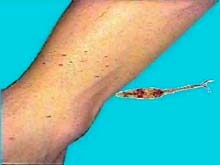 Ấu trùng tiếp cận để chui qua da | Viêm da do ấu trùng sán máng |
