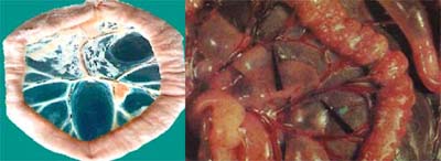 + Đối với S.mansoni triệu chứng chủ yếu là đại tiện ra máu do ruột bị loét, gan lách to giống như hội chứng Banti, kèm theo sốt, thiếu máu nặng, sa trực tràng