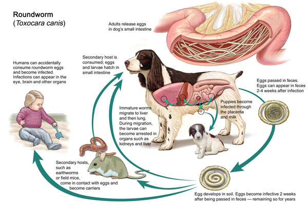 Một số giun tròn sẽ trưởng thành và trứng của chúng sẽ đi ra phân nhiễm vào trong môi trường nếu chó con và mèo con được sổ giun mỗi 3 tuần. Hội Ký sinh trùng thú cảnh khuyến khích chiến lược sổ giun này.