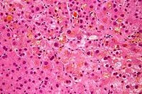Xem dưới kính hiển vi, các tế bào gan riêng lẻ sẽ có những chấm màu vàng nâu xuất hiện bên trong bào tương, có sự hiện diện của mật mà không thể ra khỏi tế bào. Các nút của kênh ống mật giữa các tế bào gan riêng lẻ nhau hoặc bên trong các ống mật có thể nhìn thấy, hiện diện mật tiết ra từ các tế bào gan nhưng không thể đi đâu xa hơn do bị tắc nghẽn. Khi các nút mật này tạo ra trong các đường mật, áp lực đủ (gây ra bởi tích tụ mật) có thể gây ra cho chúng vỡ, dẫn mật vào trong các mô xung quanh, gây nên tình trạng hoại tử gan (hepatic necrosis). Các vùng này được biết như hồ mật và có thể nhìn thấy rõ chỉ khi tắc mật ngoài gan.