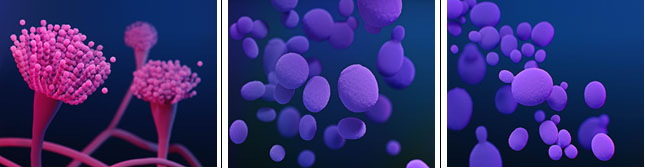 Hình 3. Hình thái một số loại nấm ký sinh ở người Aspergillusspp., Candidaspp. và Candida auris
