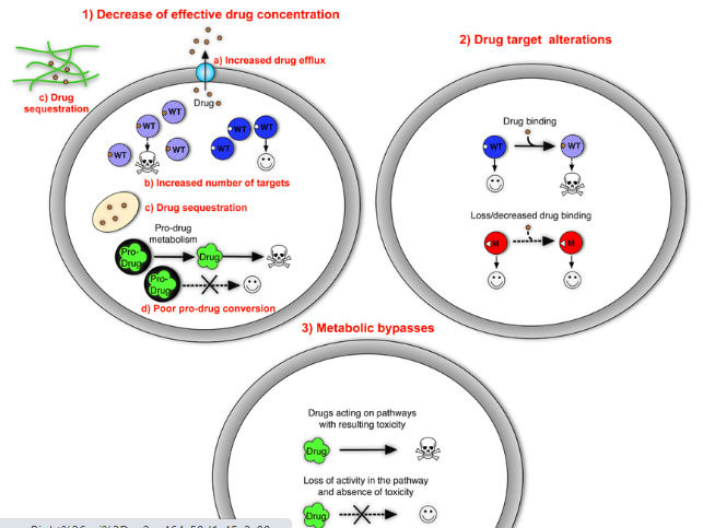 Hình 4. Ba cơ chế cơ bản về kháng thuốc kháng nấm được ghi nhận