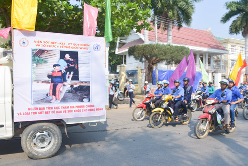 Với chủ đề “End Malaria For Good: Loại trừ sốt rét cho cuộc sống tốt đẹp hơn”; Viện Sốt rét-Ký sinh trùng-Côn trùng Quy Nhơn đã phối hợp với Tổ chức Y tế thế giới (WHO) và Sở Y tế tỉnh Khánh Hòa tổ chức Lễ phát động truyền thông và diễu hành hưởng ứng Ngày thế giới tại huyện Khánh Vĩnh, tỉnh Khánh Hòa, là một trong 10 tỉnh có tỷ lệ bệnh nhân sốt rét trên dân số cao nhất cả nước (0.62/1.000 dân số chung), một trong 5 tỉnh có ký sinh trùng sốt rét kháng thuốc Artemisinin.