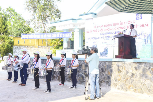 Sau những tiết mục văn nghệ vui nhộn của viên chức, người lao động Trung tâm Văn hóa-Thể thao huyện Khánh Vĩnh là bài phát biểu chỉ đạo của PGS.TS Trần Đắc Phu-Cục trưởng Cục YTDP, Ông Nguyễn Đắc Tài, Phó chủ tịch UBND tỉnh Khánh Hòa. BS. Trần Công Đại thay mặt cho Tổ chức Y tế thế giới tại Việt Nam phát biểu ca ngợi những thành quả đạt được trong công tác PCSR của thế giới nói chung và Việt Nam nói riêng cũng như những thách thức mà mỗi quốc gia phải đối mặt. PGS.TS. Nguyễn Văn Chương, Viện trưởng Viện Sốt rét-KST-CT Quy Nhơn đã phát biểu khai mạc và phát động chiến dịch ra quân thực hiện các biện pháp phòng chống sốt rét năm 2016; phát biểu hưởng ứng Ngày Thế giới PCSR của Ông Mấu Văn Phi, Phó chủ tịch UBND huyện Khánh Vĩnh và BS CKII. Nguyễn Đình Thoan, Phó Giám đố Sở Y tế Khánh Hòa.