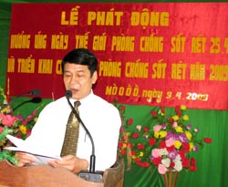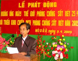 Hưởng ứng lễ phát động BS. Lê Văn Cư-Giám đốc Trung tâm Y tế huyện Lệ Thủy đại diện cho các Trung tâm y tế huyện, BS. Lê Văn Sơn-Trưởng Phòng Y tế Quảng Ninh đại diện cho các Phòng y tế các huyện, BS. Lê Văn Toàn-Trung tá Chủ nhiệm Quân y biên phòng đại diện cho các đơn vị Quân y trong tỉnh và ông Cao Xuân Tạo-Chủ tịch UBND xã Thượng Hóa đã cam kết thực hiện tốt công tác phòng chống sốt rét năm 2009 với quyết tâm cao nhất.