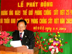 Phát biểu tại buổi lễ, TS. Triệu Nguyên Trung-Viện trưởng Viện Sốt rét-Ký sinh trùngđã nêu rõ mục đích, ý nghĩa và tầm quan trọng của ngày sốt rét thế giới đồng thời phát động phòng chống sốt rét ở tỉnh Quảng Bình nói riêng và khu vực miền Trung-Tây Nguyên nói chung trong năm 2009 tập trung đẩy lùi bệnh sốt rét ở các vùng sốt rét lưu hành nặng và phát triển các yếu tố bền vững nhằm ngăn chặn sốt rét quay trở lại, tiến tới loại trừ bệnh sốt rét theo mục tiêu của Tổ chức Y tế thế giới (WHO) đề ra; hoàn thành vượt mức các chỉ tiêu sốt rét được Bộ Y tế giao là giảm mắc sốt rét, giảm chết sốt rét và không để dịch sốt rét xảy ra trên địa bàn khu vực; hoàn thành vượt mức khối lượng cũng như chất lượng chỉ tiêu bảo vệ bằng hóa chất diệt muỗi, đảm bảo thuốc sốt rét được cấp miễn phí tới tận cơ sở để bảo vệ người dân sống ở các vùng sốt rét lưu hành; nâng cao chất lượng các biện pháp chuyên môn kỹ thuật phòng chống sốt rét tại các vùng trọng điểm nhằm ngăn chặn nguy cơ xảy dịch; kết hợp chặt chẽ quân dân y trong phòng chống sốt rét, đặc biệt là vùng sâu, vùng xa, vùng biên giới, hải đảo; mỗi cán bộ ngành y tế phải là truyền thông viên tích cực trong công tác truyền thông giáo dục-xã hội hóa phòng chống sốt rét giúp cộng đồng nâng cao nhận thức hiểu biết về sốt rét và những tác hại của nó đối với sức khỏe con người.