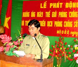 Bs. Phạm Sinh Quyết-Giám đốc Trung tâm Phòng chống sốt rét & Bướu cổ phát biểu tại Lễ phát động | BS. Lê Văn Toàn-Trung tá Chủ nhiệm Quân y biên phòng đại diện cho các đơn vị Quân y trong tỉnh phát biểu tại Lễ phát động |