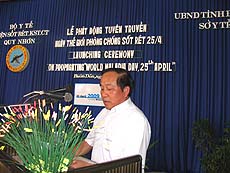 TS. Nguyễn Huy Nga-Cục trưởng Cục Y tế dự phòng & Môi trường-Bộ Y tế phát biểu trong Lễ phát động tuyên truyền Ngày Sốt rét thế giới vào ngày 24 tháng 4 năm 2009 tại huyện Buôn Đôn |