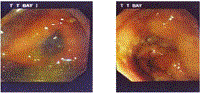 -Nội soi đại tràng cho thấy hình ảnh toàn bộ đại tràng ngang thâm nhiễm, viêm-loét trợt và hẹp lòng, sinh thiết sang thương làm giải phẩu bệnh (Hình 3).