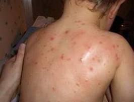 Bệnh biểu hiện với một thương tổn da cấp tính có mụn nước, mụn mủ, bọng nước. Thường khi đó dễ nhầm lẫn với một số thương tổn da do bệnh lý khác (viêm da tiếp xúc, bệnh da do côn trùng, ký sinh trùng, hội chứng ấu trùng di chuyển), nên phải phân định bệnh khác nhau. Đặc trưng của bệnh là ngứa, phát ban ngoài da, ban sẩn có mụn nước kèm theo có thể sốt hoặc không sốt. Người bệnh thường có dấu hiệu ban đầu là sốt nhẹ, mệt mỏi, biếng ăn, đau cơ; sau đó các nốt rạ xuất hiện ở da đầu, mặt, lan xuống theo thân người, tay chân. Đã có người bệnh có cả hàng ngàn nốt, gây ngứa, đau nhức, khó chịu và có thể bội nhiễm vi khuẩn mau chóng. Cảm giác đau rát, bỏng, hoặc cảm giác kim châm dọc theo vạt da vùng chi phối của dây thần kinh bị tổn thương. Khoảng 2-3 ngày sau xuất hiện vệt đỏ lan tỏa dọc theo vùng da bị đau rát, đồng thời mụn nước xuất hiện kèm theo ngứa, sau đó vỡ ra, biến mất rồi để lại sẹo mờ sau 2-3 tuần. Vị trí tổn thương thường gặp gặp chủ yếu ở ngực hay ở lưng, mông, gáy, da đầu, chân tay,…