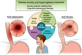 Hình 2. Nội soi thực quản và cảm giác nuốt nghẹn hay vướng thức ăn trong bệnh lý EoE