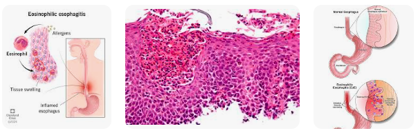 Hình 1. Viêm thực quản tăng bạch cầu ái toan và hình ảnh mô học sau sinh thiết