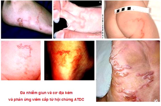 G. spinigerum | 1 - 4 năm | Các chi, đầu, mặt, trung ương, thân mình | Ban đỏ > ban trườn |