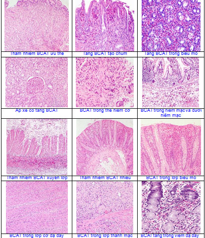 Hình 4. Các hình ảnh thâm nhiễm BCAT trong các lớp khác nhau của dạ dày viêm tăng BCAT